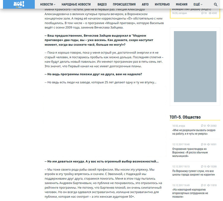 Видеобаннер позывается в открытой новости после 5 абзаца. Старт видео происходит только при попадании в видимую часть браузера. При старте контент под окном с видеорекламой сдвигается вниз на время показа ролика. После окончания ролика окно показа сворачивается.