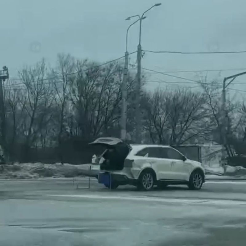 Причем торгуют прямо с машин, расставив импровизированные столики