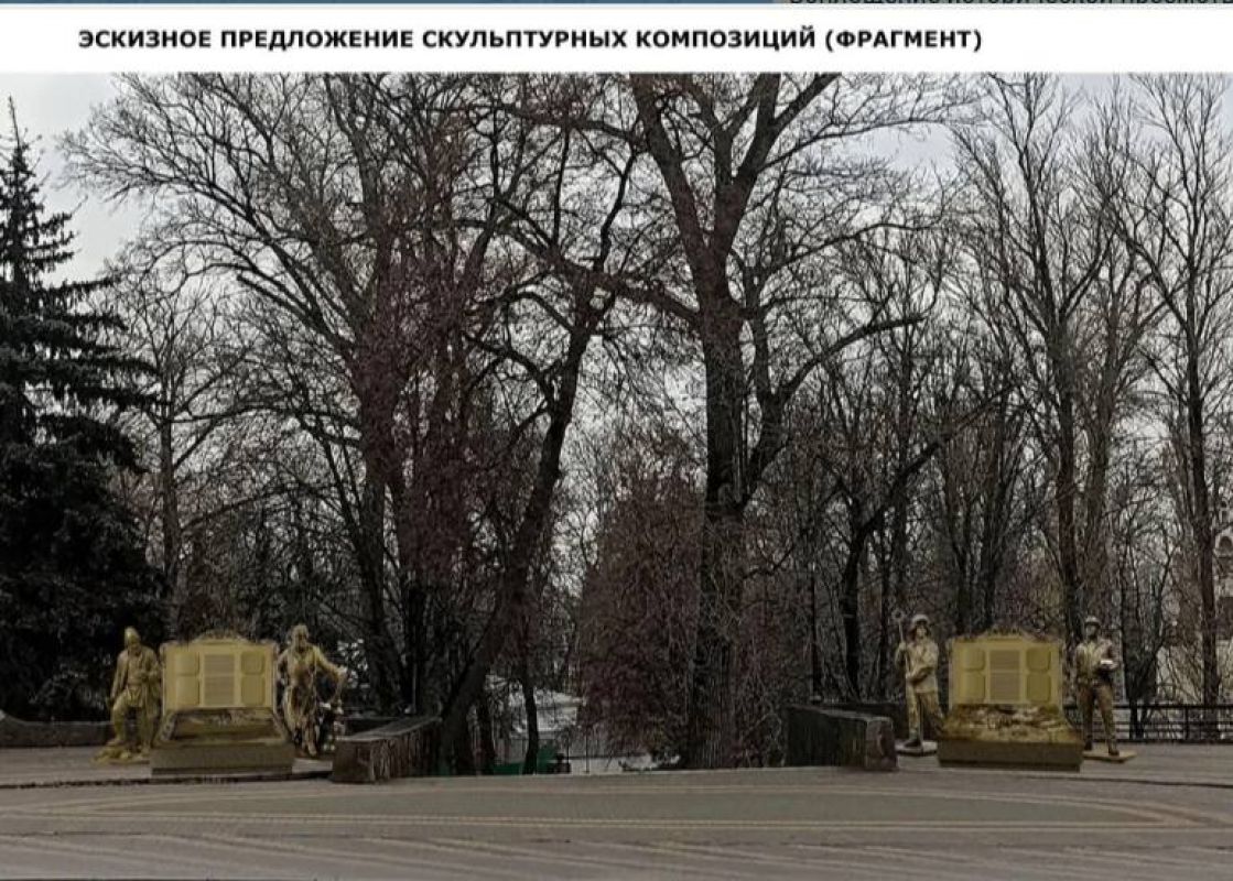 Суть предложения — создать в Нижнем парке скульптурную композицию из четырёх фигур, выстроенных в два смысловых блока