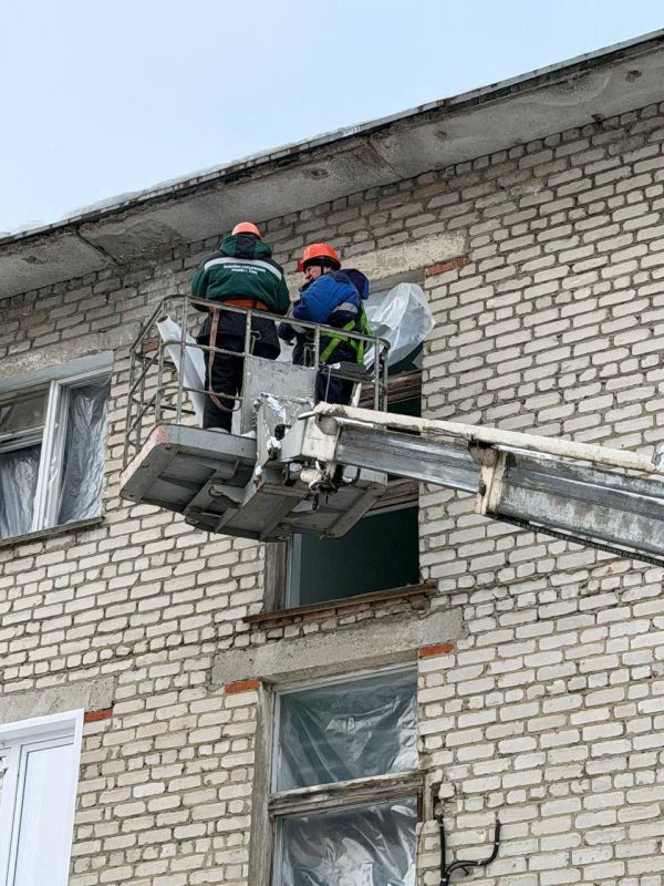 В Ельце стартовали работы по ликвидации последствий ночной атаки беспилотников. Сотрудники аварийно-спасательной службы приступили к первоочередным мероприятиям по временной консервации поврежденных оконных проемов в жилых домах. Это необходимо для защиты квартир от непогоды и предотвращения дальнейших разрушений. Интересно, что дома в 15-градусный мороз «утепляют» пленкой.