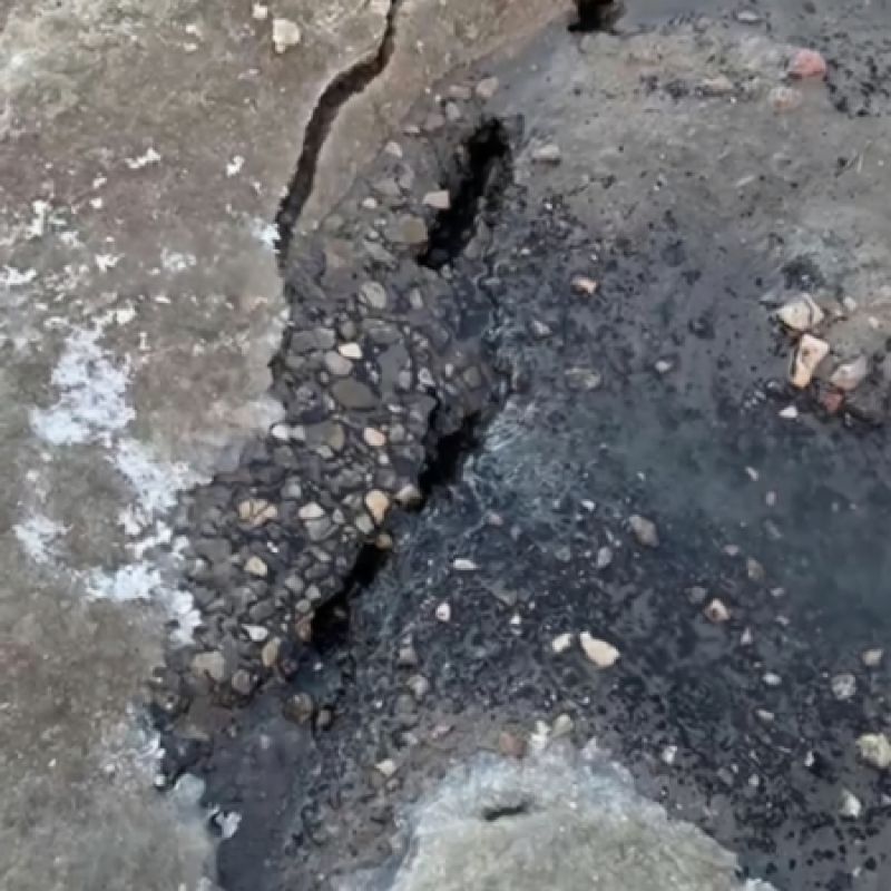 «Вода течёт прямо по дороге, растекается, и чувствуется сильный запах. Асфальт уже просел, появилась дыра. Страшно, что там под ним — может, уже пустота. И люди ходят, и машины ездят — в любой момент может случиться беда», — рассказал один из жителей.
