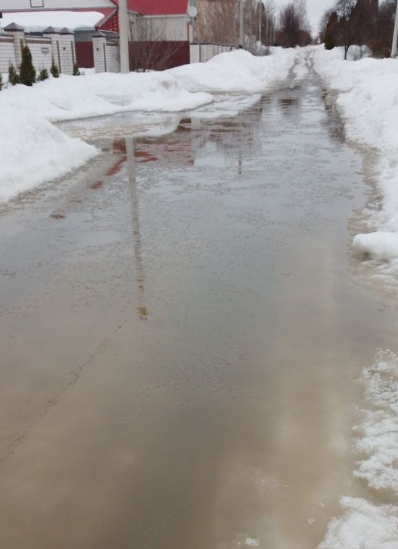 Ситуация усугубляется тем, что таяние продолжается. Ходить и ездить по затопленной дороге небезопасно.