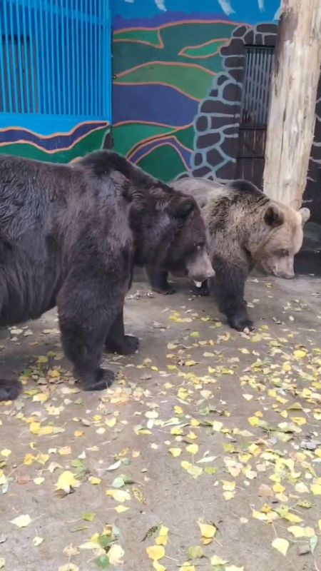 У бурых медведей Маши и Миши из Липецкого зоопарка наступила ответственная пора — подготовка к зимней спячке. Если всё лето они были неразлучны, то совсем скоро каждому предстоит отправиться в свою собственную берлогу.