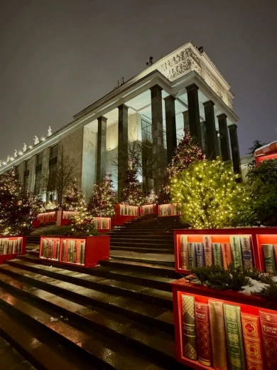 Бывшая Ленинская библиотека на Воздвиженке. Тут ели и пихты, кедры - гималайский, атлантический и ливанский, сосны. Вокруг памятника Ф.М. Достоевскому - таинственный читальный зал с книжными , большие латунные лампы с уютными зелеными абажурами.