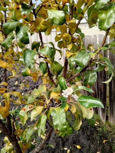 Здравствуйте у моего товарища на улице Петрозаводской это цвела груша осенью будем есть плоды зимой всё отправлю может