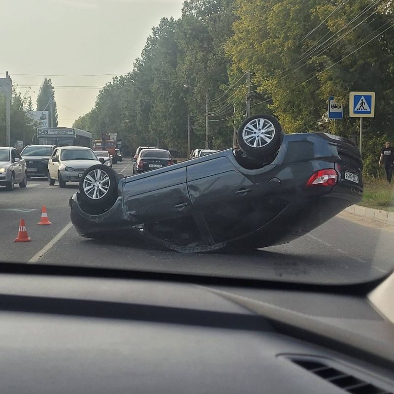 В Липецке столкнулись две «Лады» — одна от сильнейшего удара оказалась на «спине»