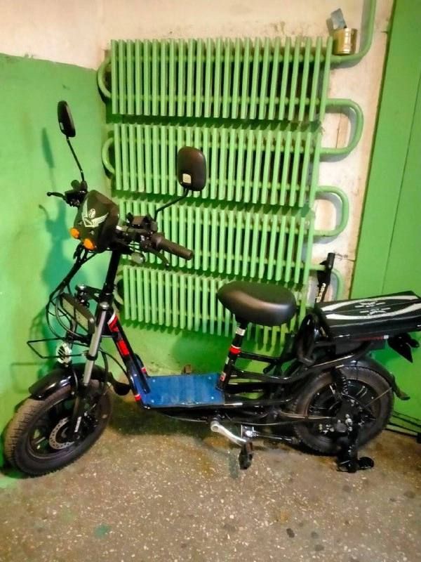 Речь идет о мопеде, который наглый владелец поставил на первом этаже напротив лифта.