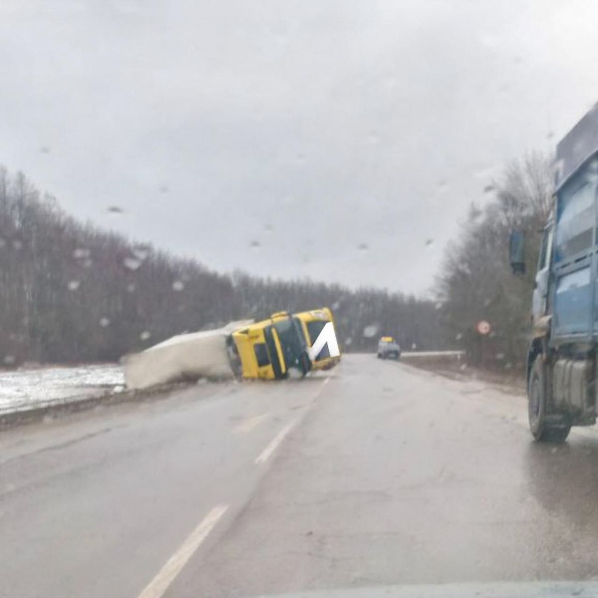 Фура перевернулась на трассе недалеко от села Кривополянье в Чаплыгинском районе. Согласно свидетельствам очевидцев большегруз оказался на боку.