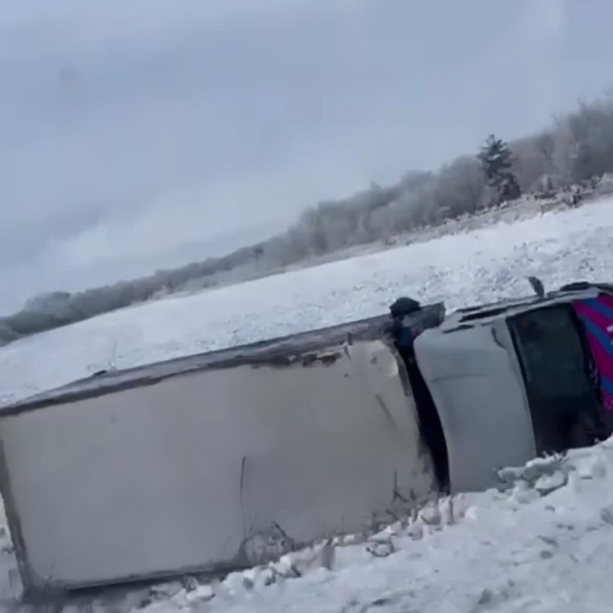 Согласно свидетельствам очевидцев водитель не смог справиться с управлением на трассе. В результате грузовик выехал на обочину и перевернулся.