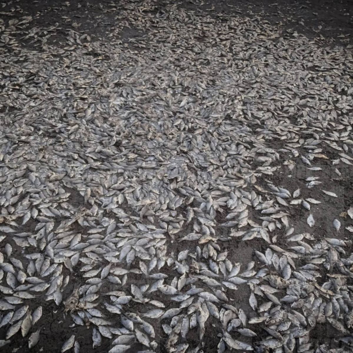 На дне рыба лежит кучами. Мертвые обитатели водоема уже гниют, а на всю округу разносится зловоние.